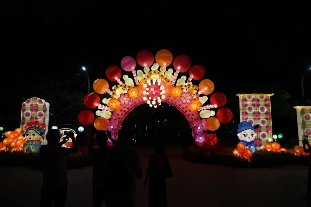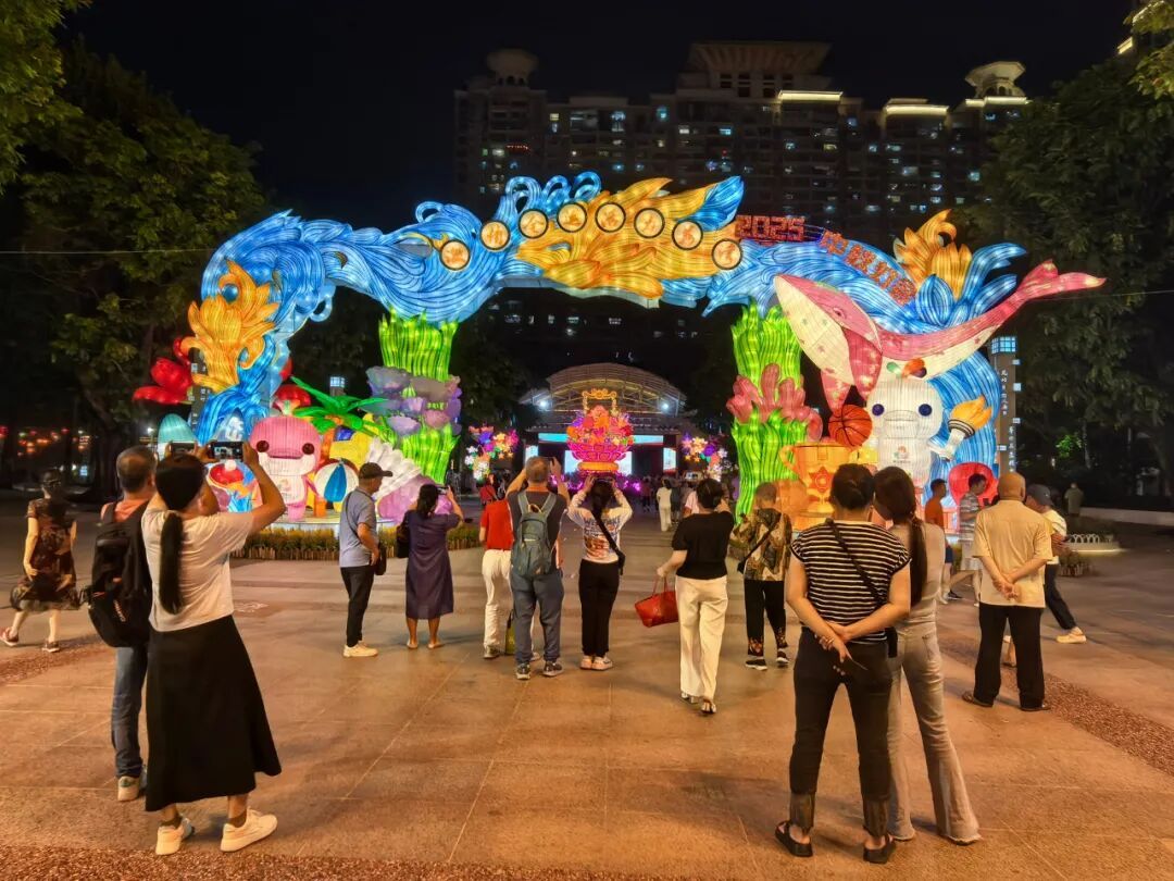 值得一提的是,伴随着公园原“汉城”地块上建成的十三行印迹园全新启用,使得本次中秋灯会成为近年来展示面积最大的一届灯会。十三行印迹园中,宫灯长廊与鱼灯长廊交相辉映,庭园灯、草地灯、泛光灯错落铺陈。灯影交织间,传统技艺与现代匠心共绘园中秋色。
